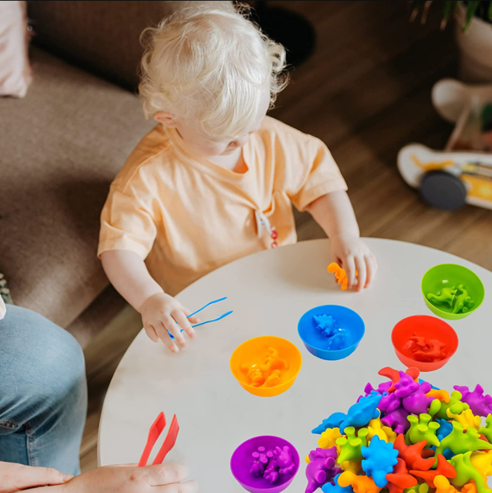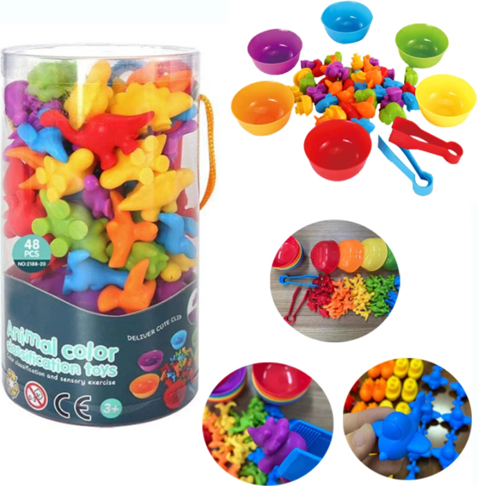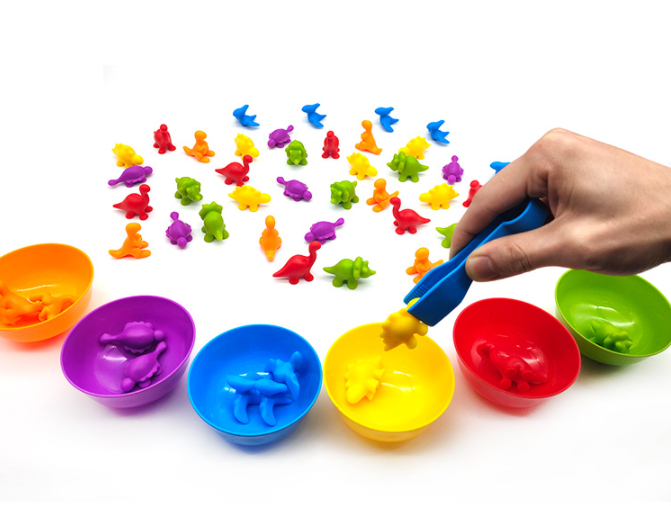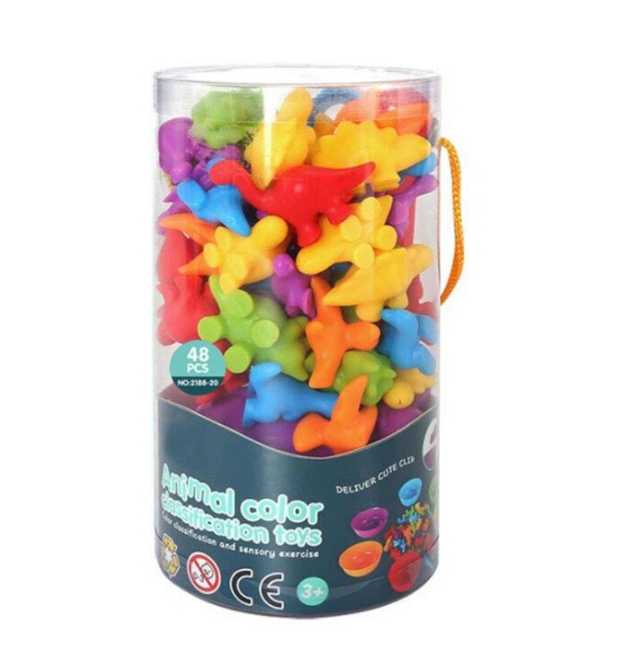 Zadaniem dziecka jest dopasowanie każdego dinozaura do kubka w odpowiednim kolorze. Ta prosta gra uczy dzieci rozpoznawania kolorów, a także pomaga im w rozwijaniu umiejętności motorycznych, ponieważ muszą umieścić każdego dinozaura w odpowiednim kubku.