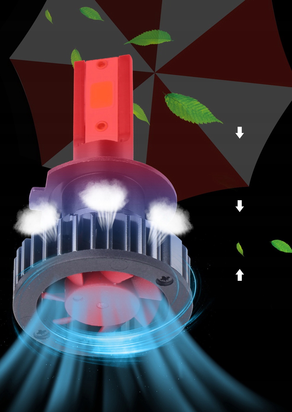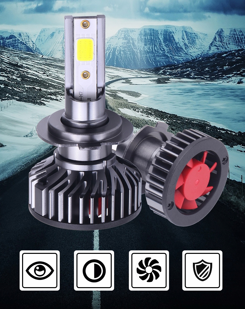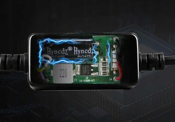 Inteligentny, sterowany chipem dwustopniowy system chłodzenia z radiatorem, wysoka wydajność, brak zakłóceń radia FM/CB oraz brak efektu wypalania się jak w przypadku żarników ksenon i tradycyjnych żarówek halogenowych.