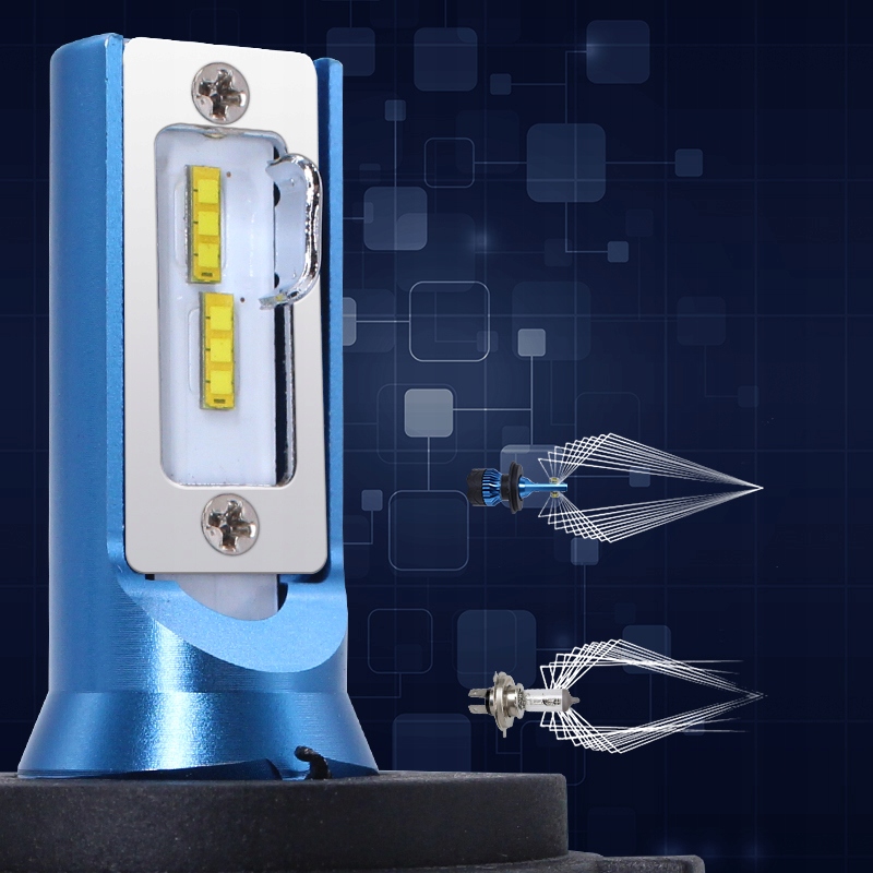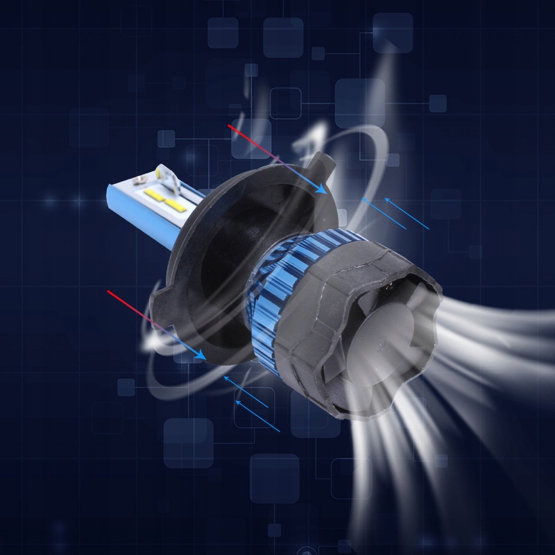 Inteligentny, sterowany chipem dwustopniowy system chłodzenia z radiatorem, wysoka wydajność, brak konieczności stosowania przetwornic oraz brak efektu wypalania się jak w przypadku żarników ksenon i tradycyjnych żarówek halogenowych.