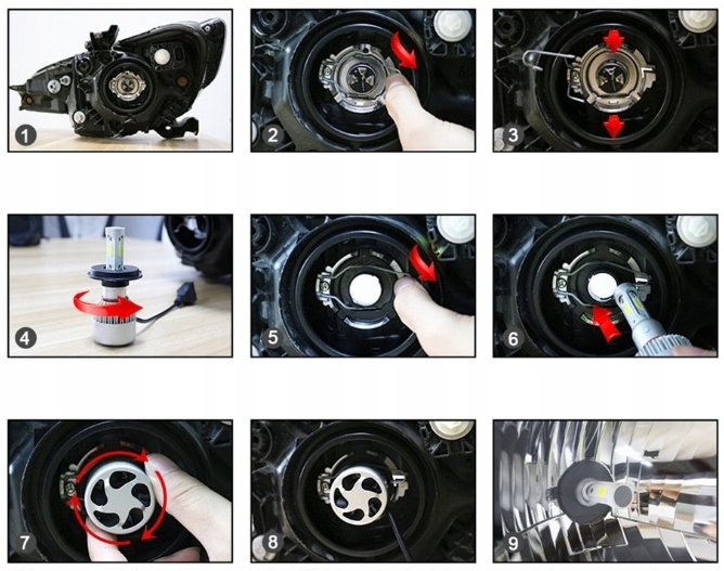- Przekręcić aby zablokować żarówkę w trzonku.