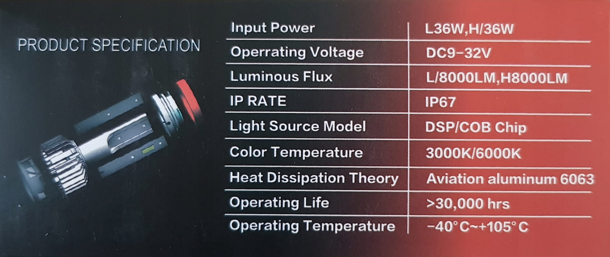Inteligentny, sterowany chipem system chłodzenia z radiatorem, wysoka wydajność, brak konieczności stosowania przetwornic oraz brak efektu wypalania się jak w przypadku żarników ksenon i tradycyjnych żarówek halogenowych.