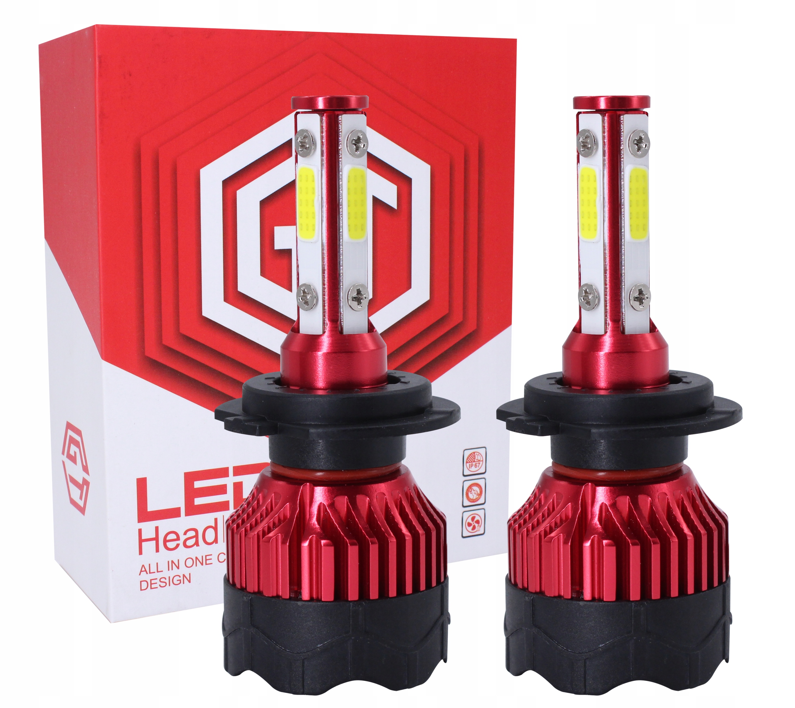 - ZESTAW 2 szt. super mocnych zamienników LED żarówek samochodowych mijania (krótkich) i drogowych (długich) 360° dedykowanych do reflektorów soczewkowych