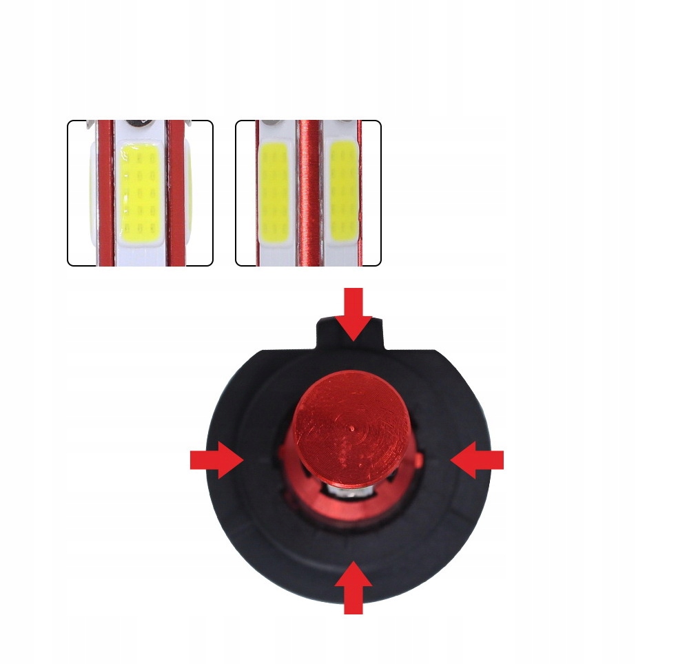 Kąt świecenia 360° dzięki 4-stronnym ultra mocnym diodom COB. Zdejmowany kołnierz trzonka, z precyzyjna podziałka kątową umożliwia ustawienie skupienia światła. Ze względu na geometrię, żarówki typu 360° uzyskują najlepszą wydajność w reflektorach soczewkowych.
