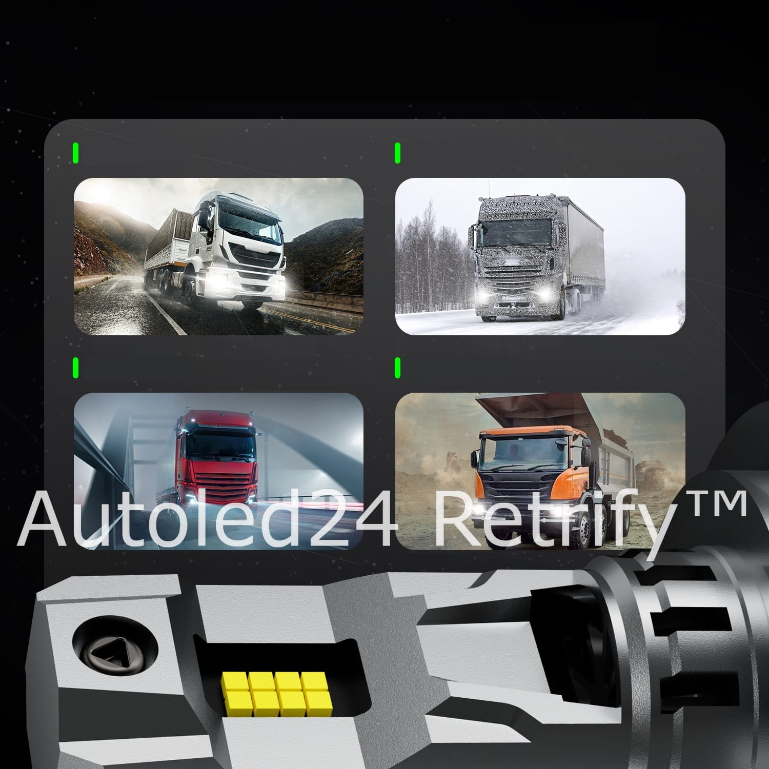 - ZESTAW 2 szt. super mocnych zamienników LED żarówek samochodowych mijania (krótkich) i drogowych (długich) Retrify® FateEye Truck Line dedykowanych do instalacji ciężarowych 24V