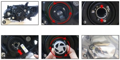 - Przekręcić aby zablokować żarówkę w gnieździe reflektora.