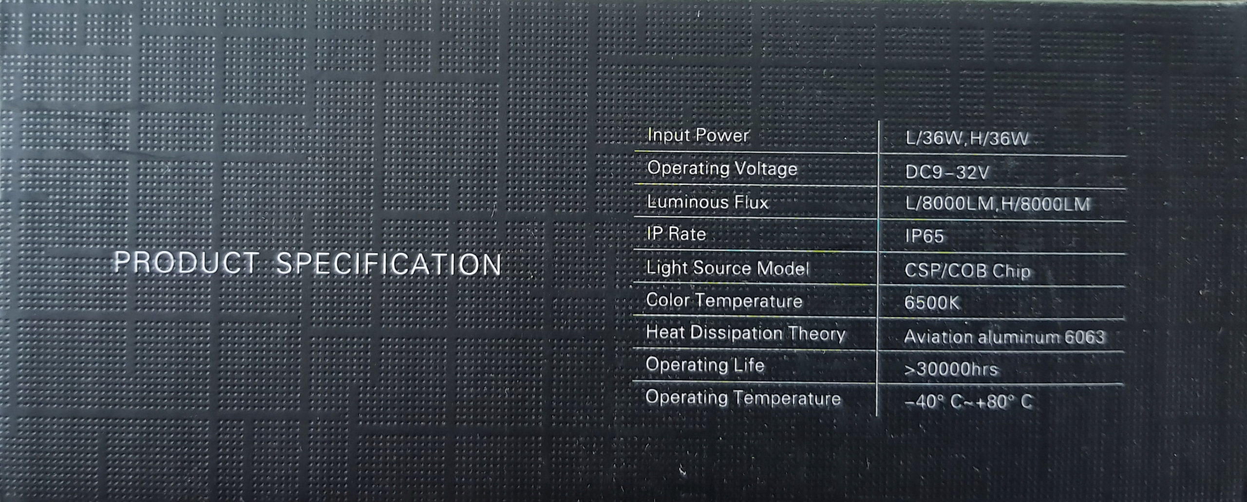 - Kolor: Xenon White 6500K