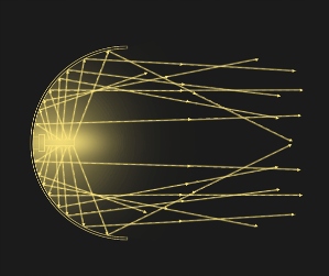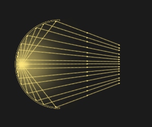 Ze względu na konieczność ustawienia linii odcięcia, źródło światła ustawione jest optymalnie w dwóch, a nie w czterech płaszczyznach, a ogniskowa odpowiada ogniskowej standardowej żarówki halogenowej.