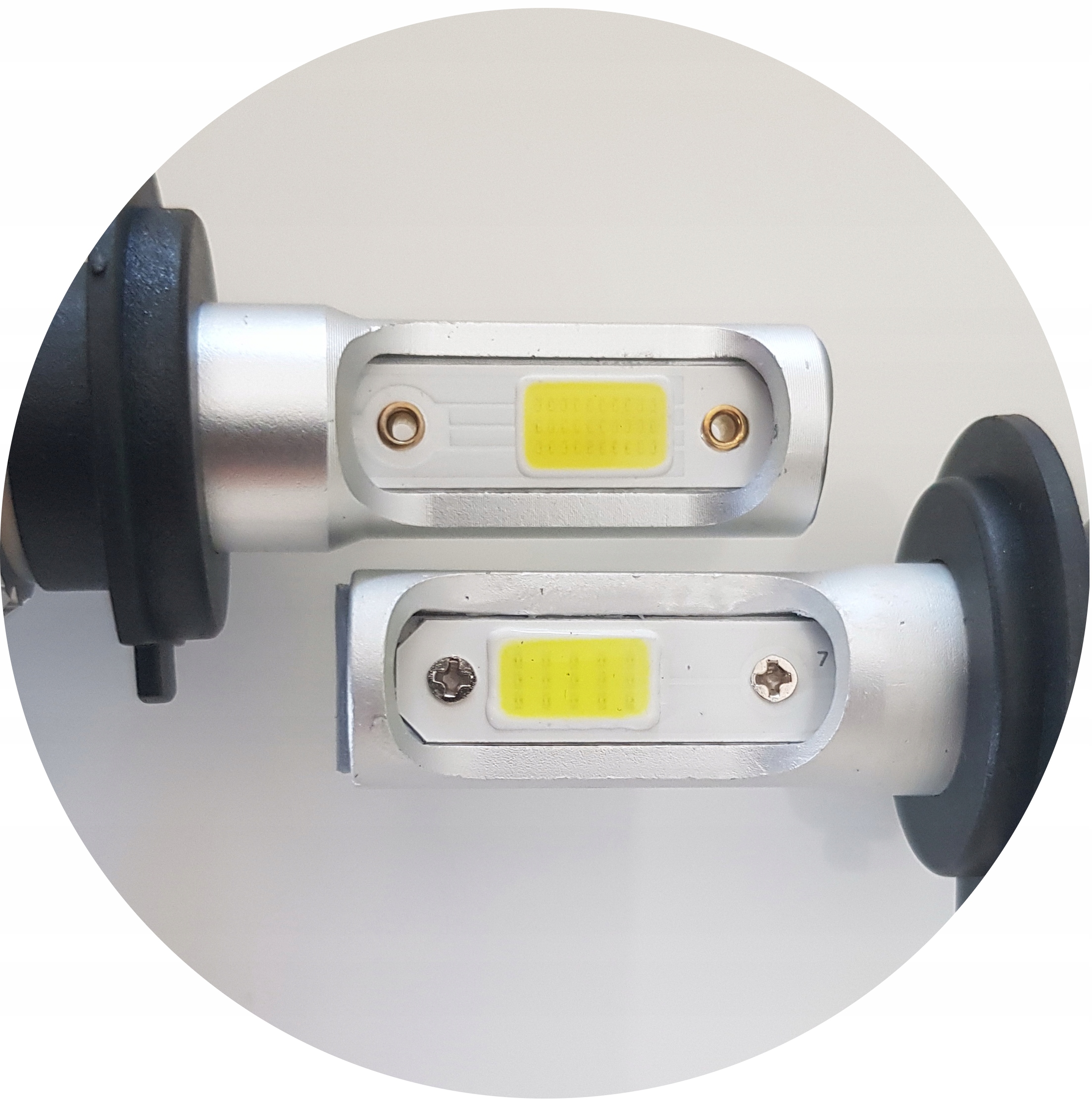 UWAGA: Nie wszystkie żarówki LED sygnowane jako S2 oferują podawane parametry dotyczące mocy i jasności. Zdjęcie poniżej przedstawia porównanie oferowanych na tej aukcji żarówek Premium z oryginalnymi diodami Epistar 1021 COB chip 2x18W z najczęściej stosowaną w najtańszych modelach diodą COB 933 o mocy 7,5W. Zagęszczenie punktów świetlnych i moc takiej diody jest mniejsza o połowę i nie nadaje się do oświetlenia drogi, mimo że pozornie żarówka jest bardzo podobna.