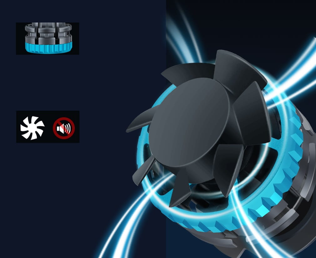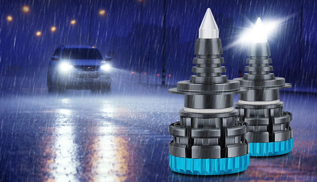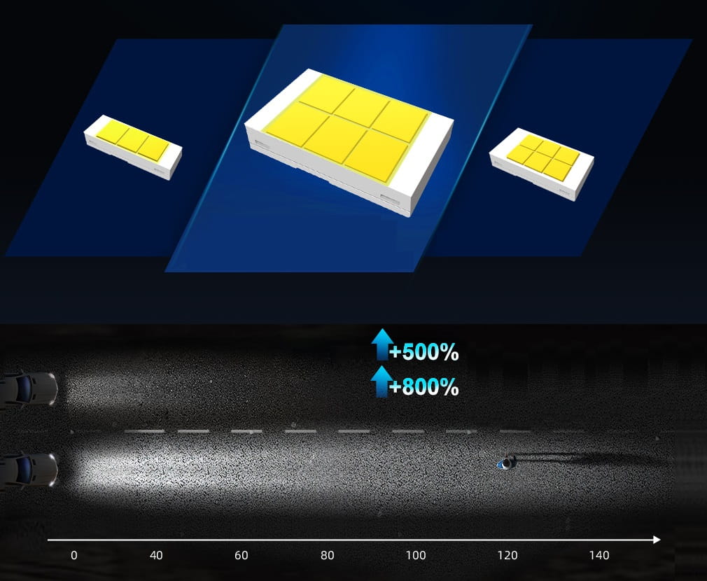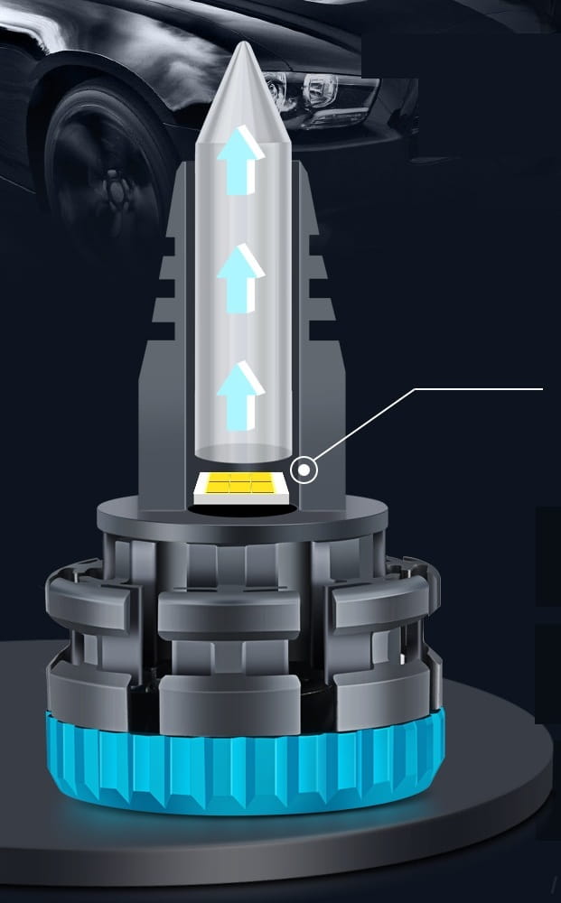 Inteligentny, sterowany chipem dwustopniowy system chłodzenia z radiatorem, wysoka wydajność, brak zakłóceń radia FM/CB oraz brak efektu wypalania się jak w przypadku żarników ksenon i tradycyjnych żarówek halogenowych.
