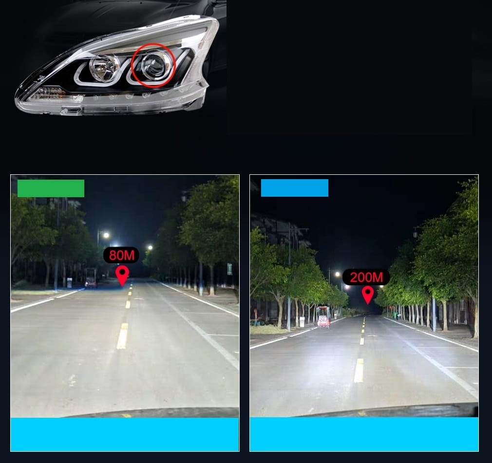 Kompaktowe rozmiary zestawu, pasuje do większości reflektorów. Do podłączenia w miejsce oryginalnych żarówek.