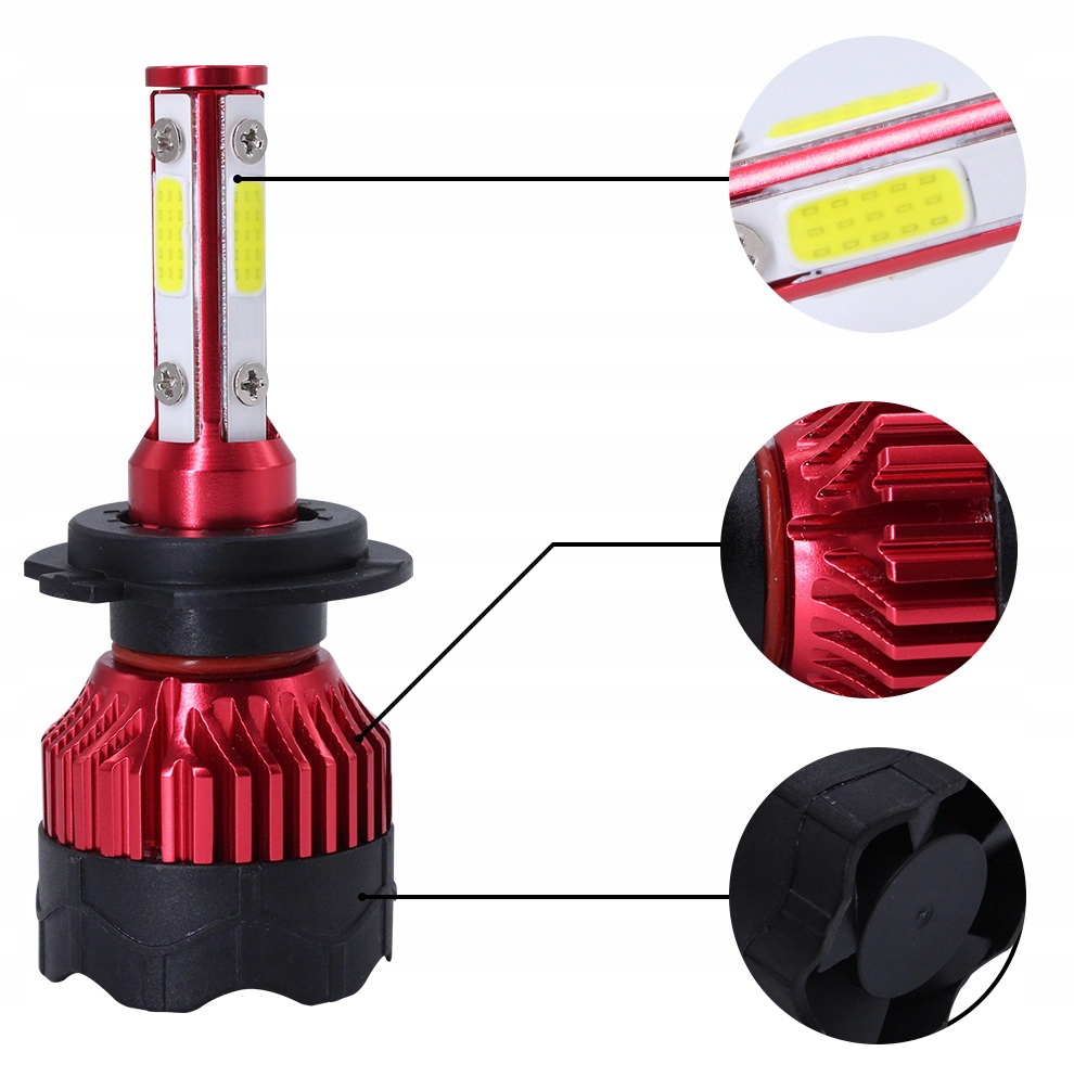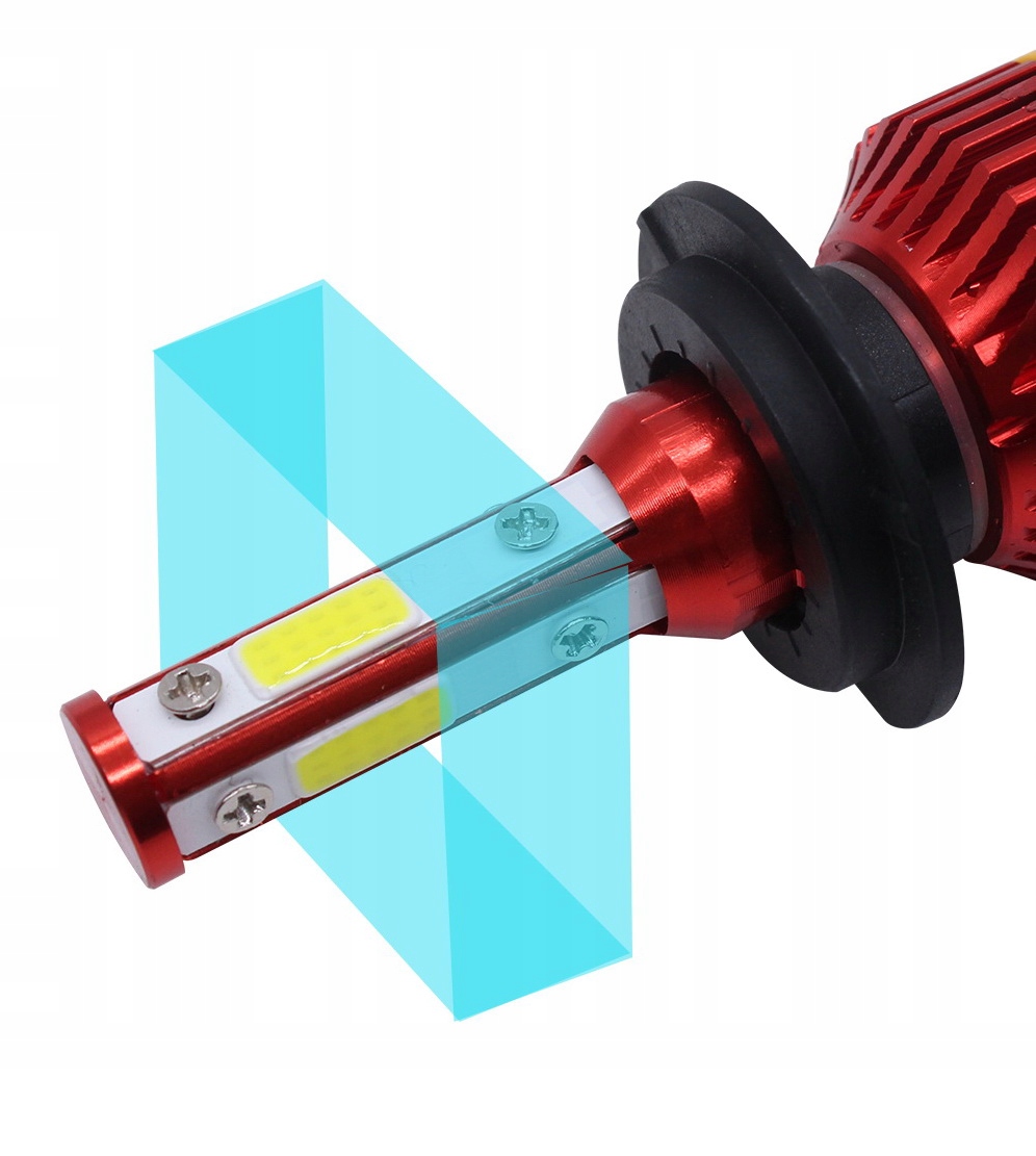 Kąt świecenia 360° dzięki 4-stronnym ultra mocnym diodom COB. Zdejmowany kołnierz trzonka, z precyzyjna podziałka kątową umożliwia ustawienie skupienia światła. Ze względu na geometrię, żarówki typu 360° uzyskują najlepszą wydajność w reflektorach soczewkowych.