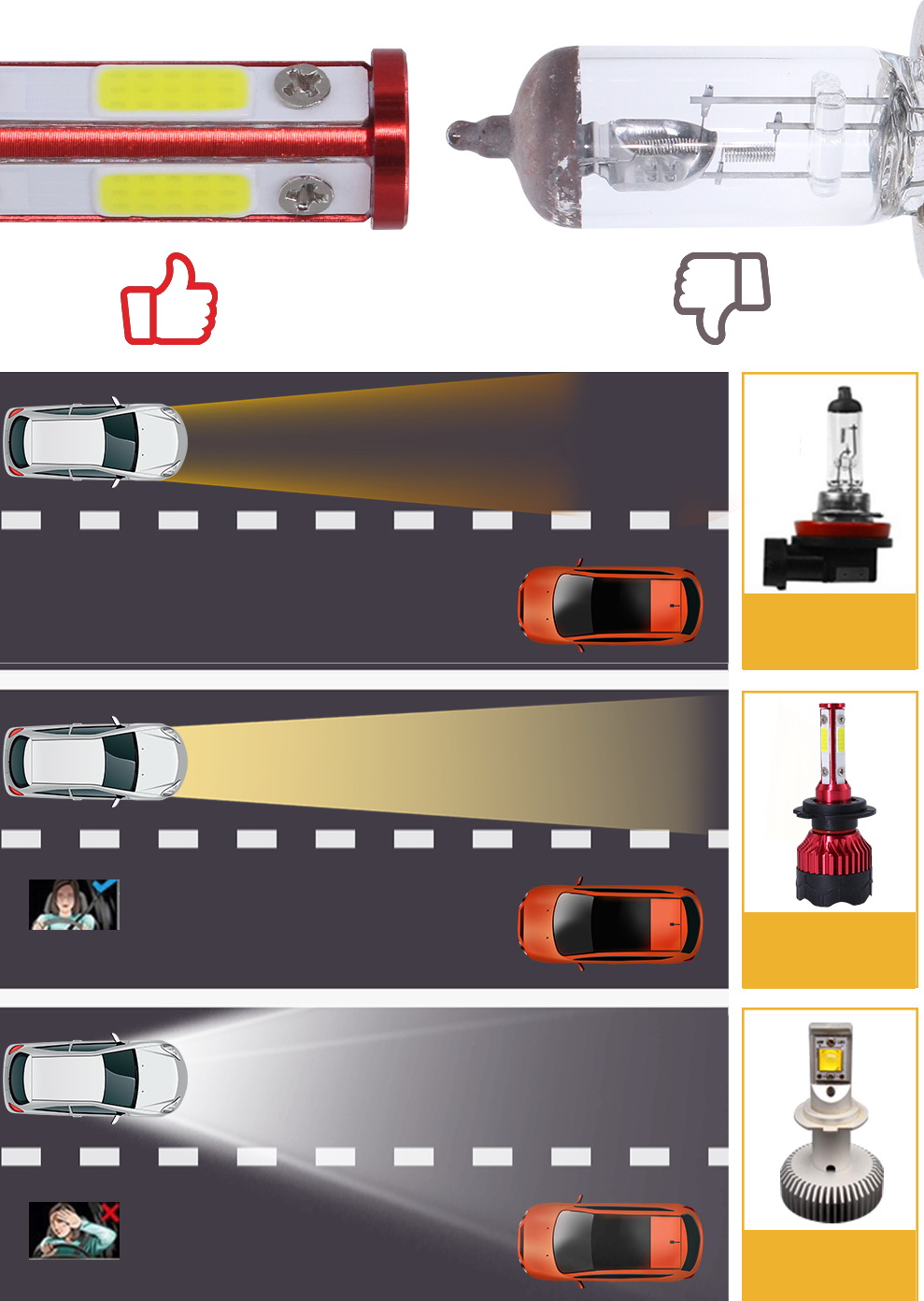 - W porównaniu z tradycyjnymi żarówkami halogenowymi, zamienniki LED gwarantują znacznie mocniejsze białe światło.