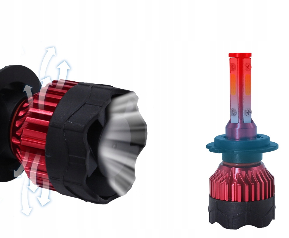 Inteligentny, sterowany chipem dwustopniowy system chłodzenia z radiatorem, wysoka wydajność, brak konieczności stosowania przetwornic oraz brak efektu wypalania się jak w przypadku żarników ksenon i tradycyjnych żarówek halogenowych.