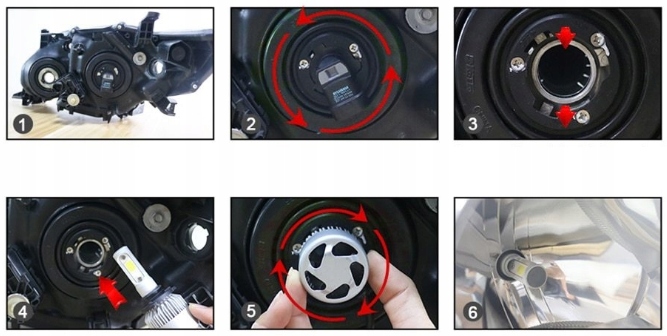 Kompaktowe rozmiary zestawu, pasuje do większości reflektorów. Do podłączenia w miejsce oryginalnych żarówek.