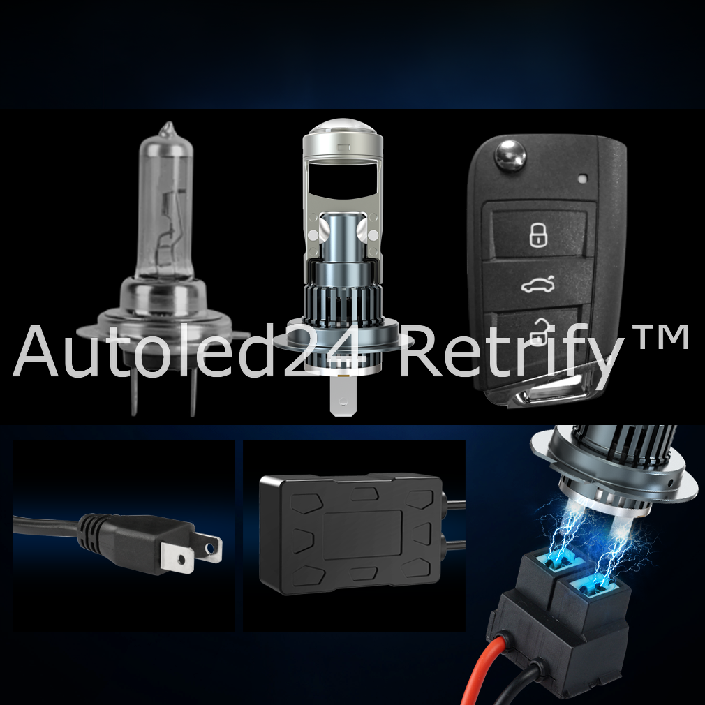 Kompaktowe rozmiary zestawu, pasuje do większości reflektorów. Do podłączenia w miejsce oryginalnych żarówek.