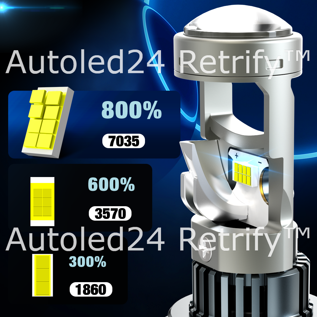 - ZESTAW 2 szt. ultra mocnych zamienników LED żarówek samochodowych mijania (krótkich) Retrify™ S&D® HB3 9005 CSP 7035 PROJECTOR