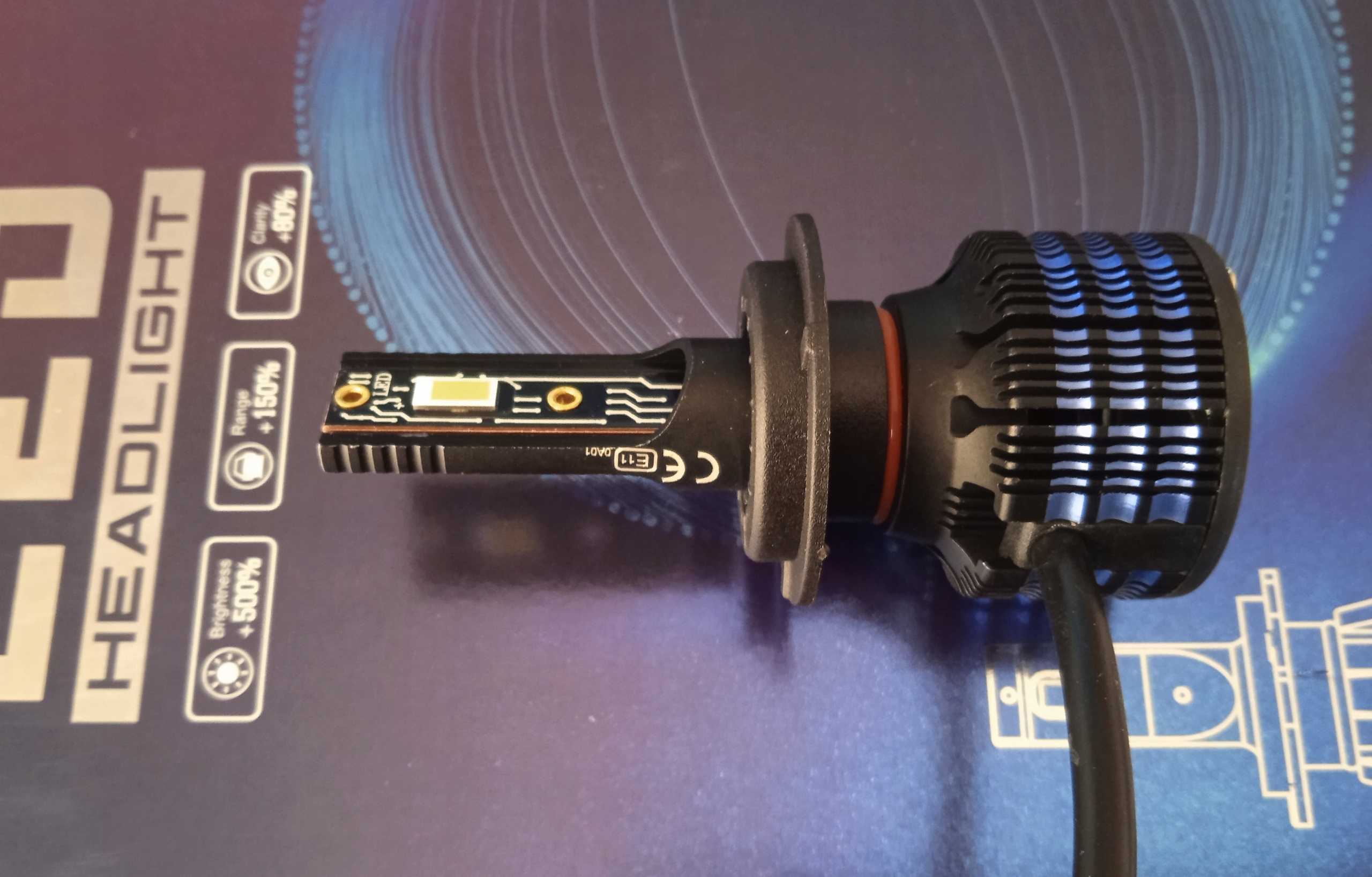 Inteligentny, sterowany chipem dwustopniowy system chłodzenia z radiatorem, wysoka wydajność, brak zakłóceń radia FM/CB oraz brak efektu wypalania się jak w przypadku żarników ksenon i tradycyjnych żarówek halogenowych.